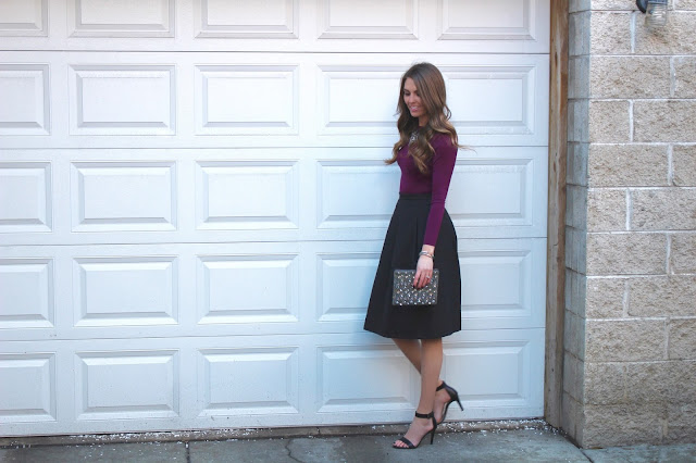 Now let’s start in your own closet. Do you have a simple long sleeve shirt? I’m assuming the answer is yes. Do you have a bubble skirt? Maybe not, but you might have another cute skirt. Or maybe you want to head out to all of the crazy good after Christmas sales that are going on and find one! The skirt I linked above is part of the Nordstrom half-yearly sale and a super good deal!