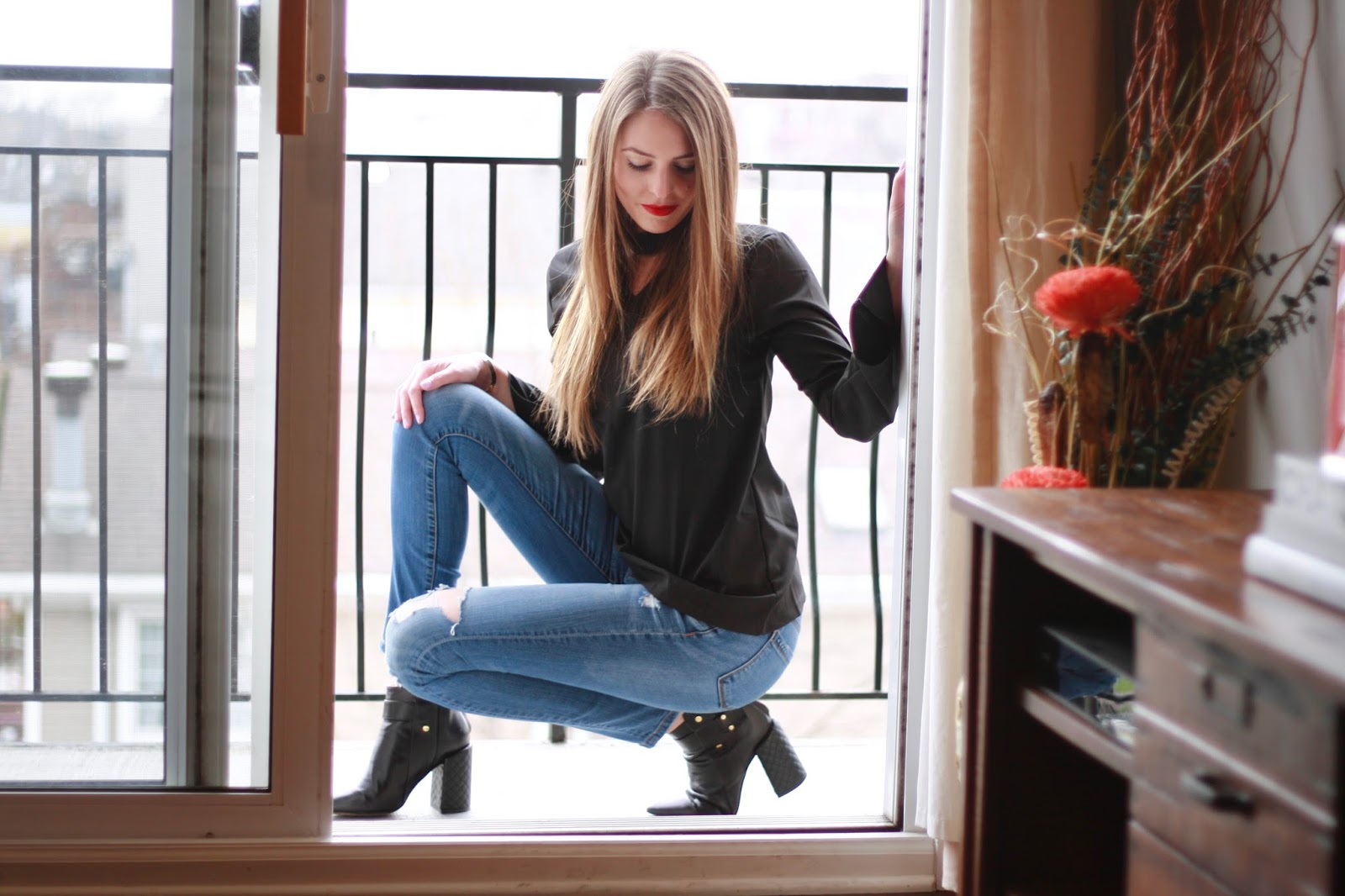 The above looks are both from Zaful and this top is such a staple item. I can wear this to work or for a night out. Here I paired it with some skinny jeans and black booties. But I also wore it to dinner the other night with jeans and over the knee boots. Oh and to wear it to work, I’ll add a pencil skirt or black slim cut pants. And there we go, I have multiple options! Love that!